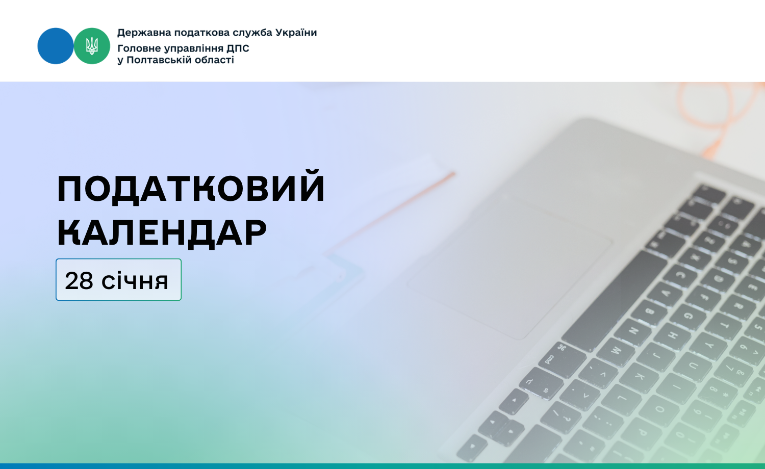 У Головному управлінні ДПС у Полтавській області нагадують платникам податків, що 28 січня: