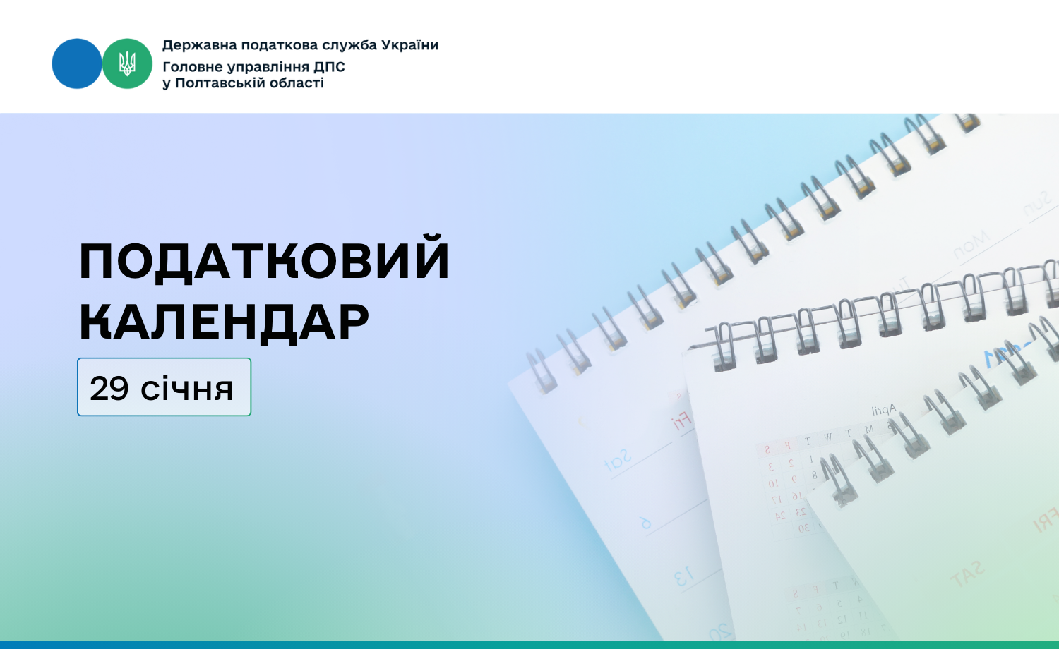 У Головному управлінні ДПС у Полтавській області нагадують платникам податків, що 29 січня: