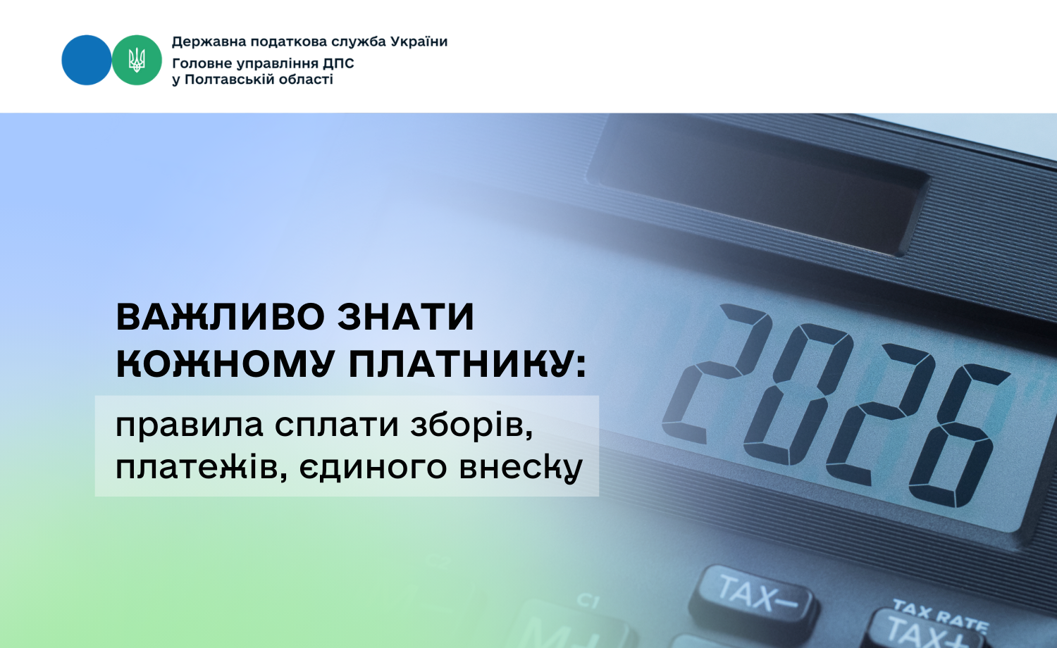 Головне управління ДПС у Полтавській області нагадує, що cплата податку, збору, платежу, єдиного внеску здійснюється платником податку / єдиного внеску безпосередньо! НЕ має права платник податків сплачувати кошти з власного рахунку та від власного імені за іншого платника.
