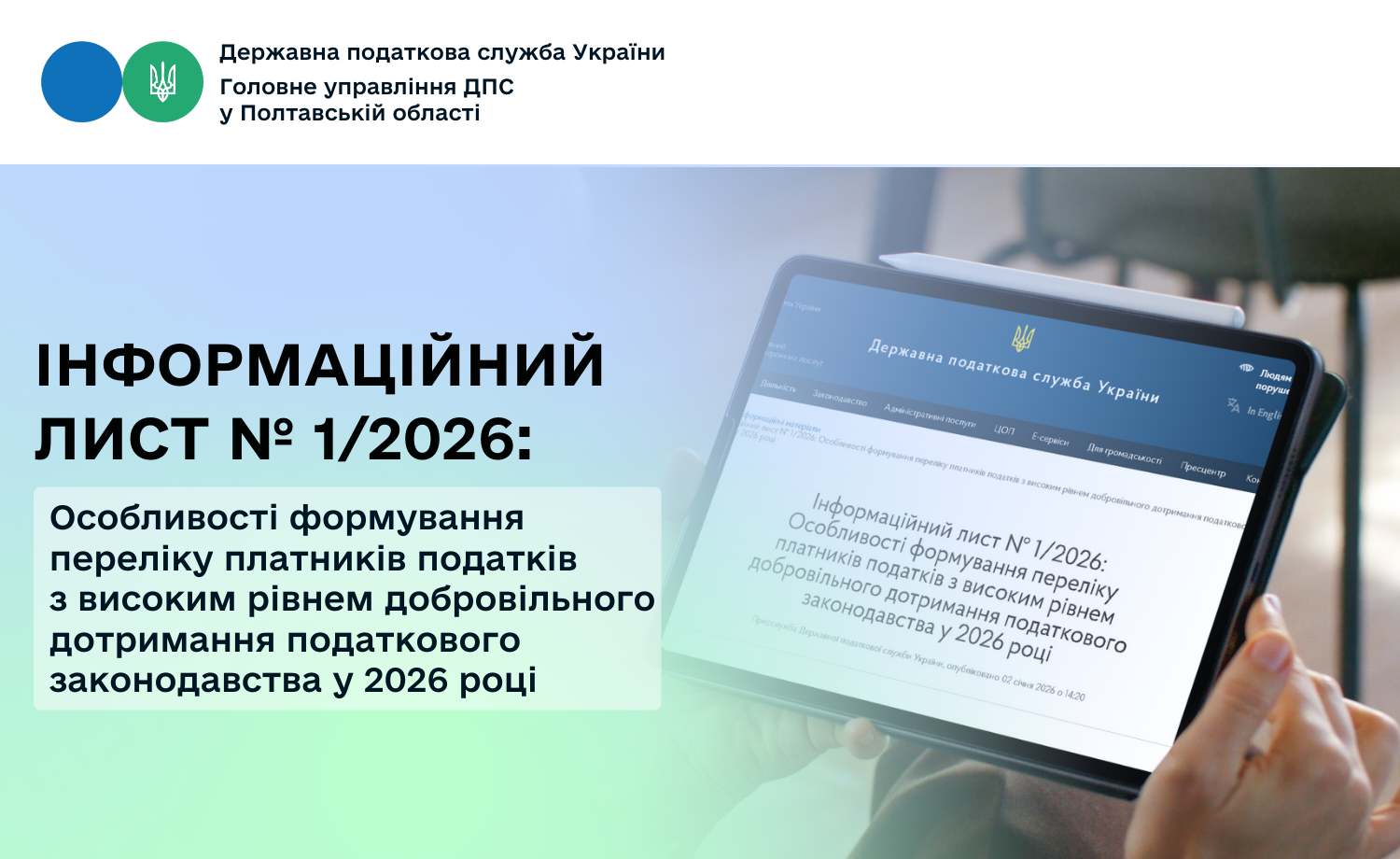 Інформаційний лист № 1/2026: Особливості формування переліку платників податків з високим рівнем добровільного дотримання податкового законодавства у 2026 році