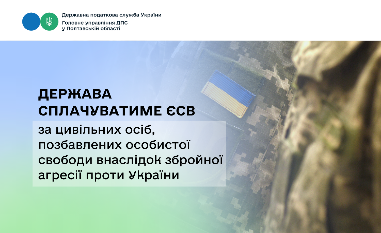 Головне управління ДПС у Полтавській області інформує, що з 1 січня 2026 року держава бере на себе обов’язок сплачувати єдиний внесок на загальнообов’язкове державне соціальне страхування (ЄСВ) за цивільних осіб, які були позбавлені особистої свободи внаслідок збройної агресії проти України. Це передбачено Законом України від 27 лютого 2025 року № 4280-IX.