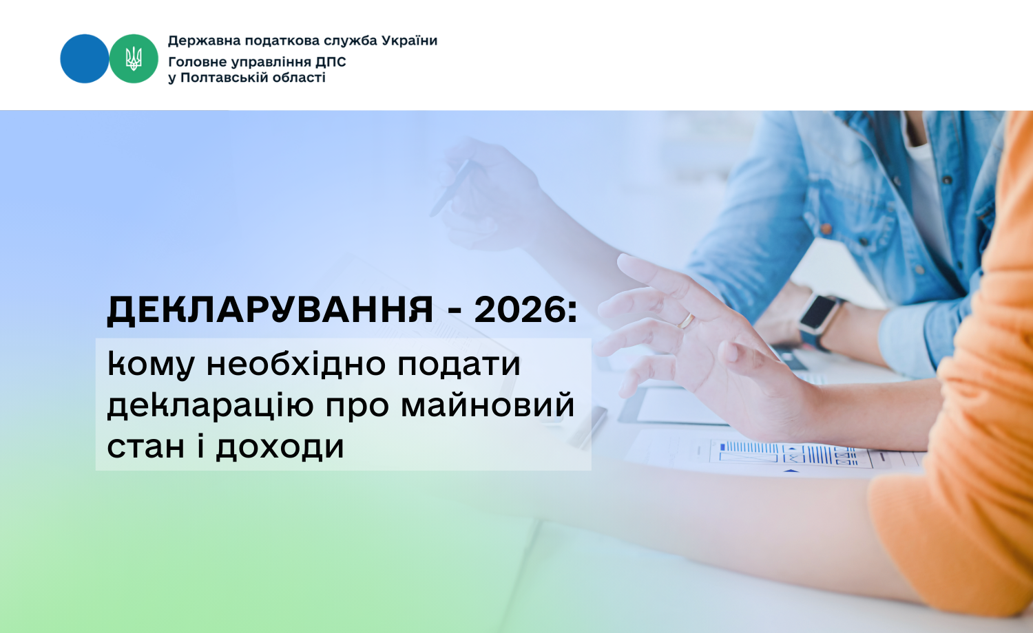 Головне управління ДПС у Полтавській області інформує, що в Україні триває щорічна кампанія декларування доходів. Це період, коли громадяни мають прозвітувати про доходи, які були отримані протягом минулого року і з яких не були сплачені податки.