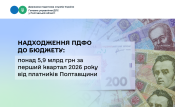 Протягом січня – березня 2026 року платники податків Полтавщини спрямували до бюджету 5 млрд 919,9 млн грн ПДФО (без врахування податку у вигляді відсотків банку). Це на 310,3 млн грн, або на 5,5 відсотка більше, ніж за аналогічний період минулого року.