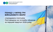 Понад 1,1 млрд грн військового збору спрямували платники Полтавщини на потреби оборони за перший квартал 2026 року
