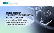 Надходження транспортного податку на Полтавщині: за три місяці 2026 року до місцевих бюджетів надійшло 2,4 млн грн