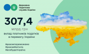 До державного бюджету надійшло 307,4 млрд грн, що на 61,5 млрд грн, або на 25 відс. перевищує відповідний показник минулого року.