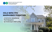 У Головному управлінні ДПС у Полтавській області повідомляють, що за січень – серпень 2025 року фізичні особи регіону перерахували до місцевих бюджетів 332,6 млн грн податку на нерухоме майно, відмінне від земельної ділянки, плати за землю та транспортного податку. Це на 66,0 млн грн більше, ніж за аналогічний період минулого року.