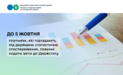 Головне управління ДПС у Полтавській області нагадує, що до 5 жовтня підприємства, установи та організації, які підпадають під державне статистичне спостереження, мають подати звітність до Держстату.