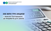 У січні – жовтні 2025 року платники податків Полтавщини перерахували 298,0 млн грн акцизного податку. Із цієї суми 34,3 млн грн надійшло до державного бюджету, а 263,7 млн грн – до місцевих бюджетів.
