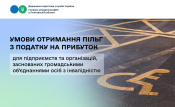 У Головному управлінні ДПС у Полтавській області повідомляють, що підприємства та організації, які засновані громадськими об'єднаннями осіб з інвалідністю і є їх повною власністю, мають право на застосування пільг з податку на прибуток.