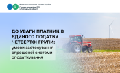 Головне управління ДПС у Полтавській області нагадує, що відповідно до абзацу 1 пункту 292 1.1 статті 292 1 Податкового кодексу України від 02 грудня 2010 року № 2755-VI (зі змінами та доповненнями), об’єктами оподаткування для платників єдиного податку четвертої групи є площа сільськогосподарських угідь, а саме: ріллі, сіножатей, пасовищ, багаторічних насаджень та/або земель водного фонду (внутрішніх водойм, озер, ставків, водосховищ), які перебувають у власності сільськогосподарського товаровиробника або надані йому у користування, у тому числі на умовах оренди.